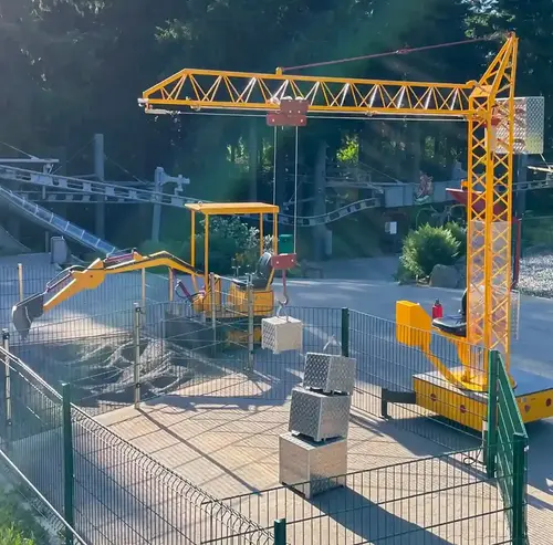 Du möchtest auch mal Bagger- oder Kranführer sein? Bei unseren „großen Baumaschinen“ kannst du das Steuer übernehmen. Platziere mit dem Kran Gewichte oder grabe mit dem Bagger eine Grube – der Baumeister bist du!